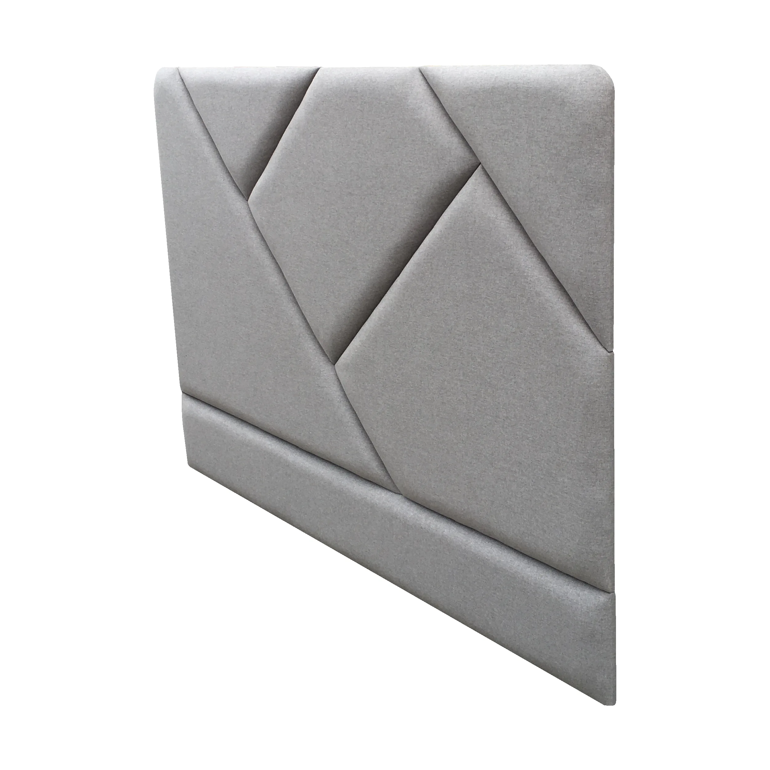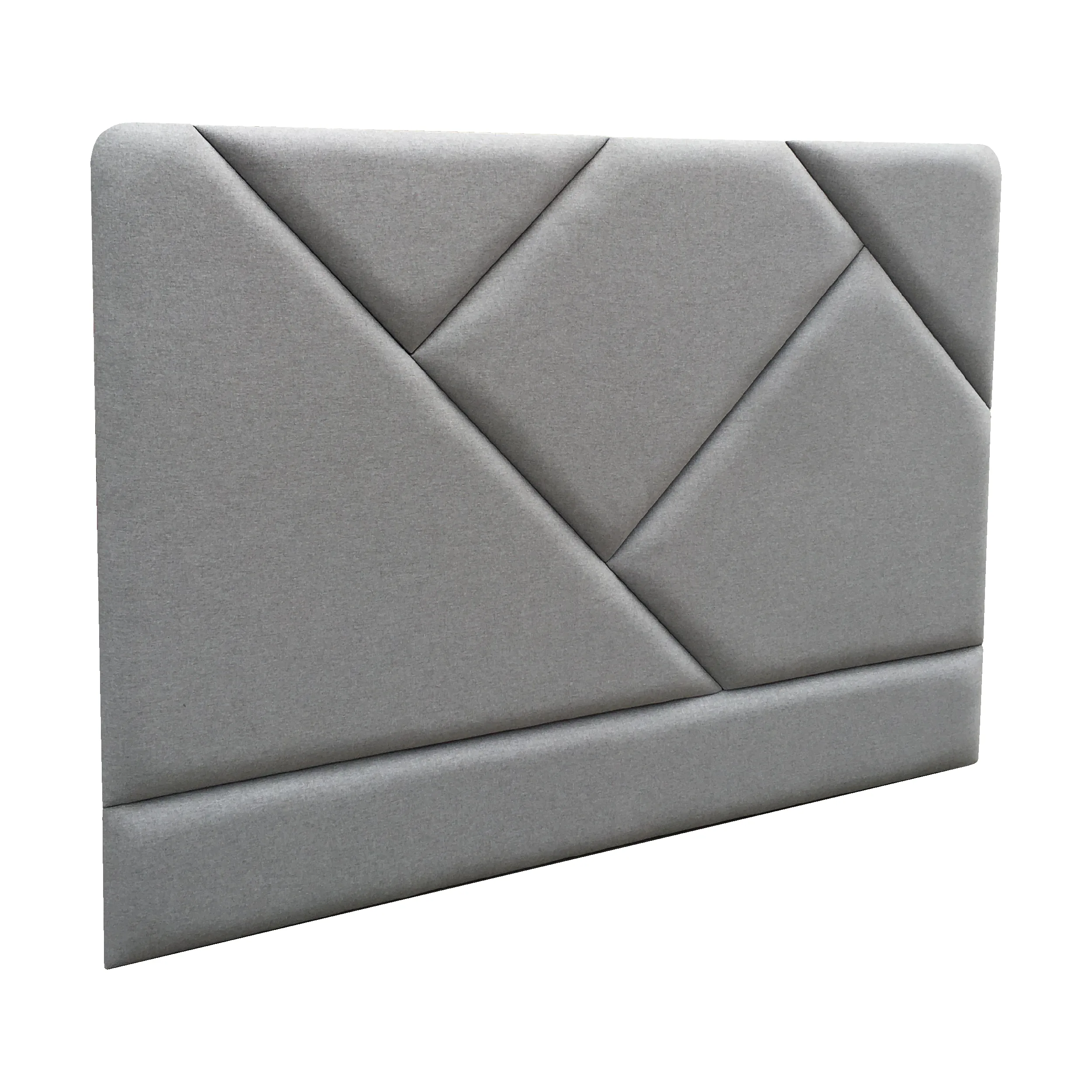 Cabecero para cama, acabado tapizado de paneles figuras geométricas independientes, con instalación sobrepuesto en el espacio o para anclar a la pared.