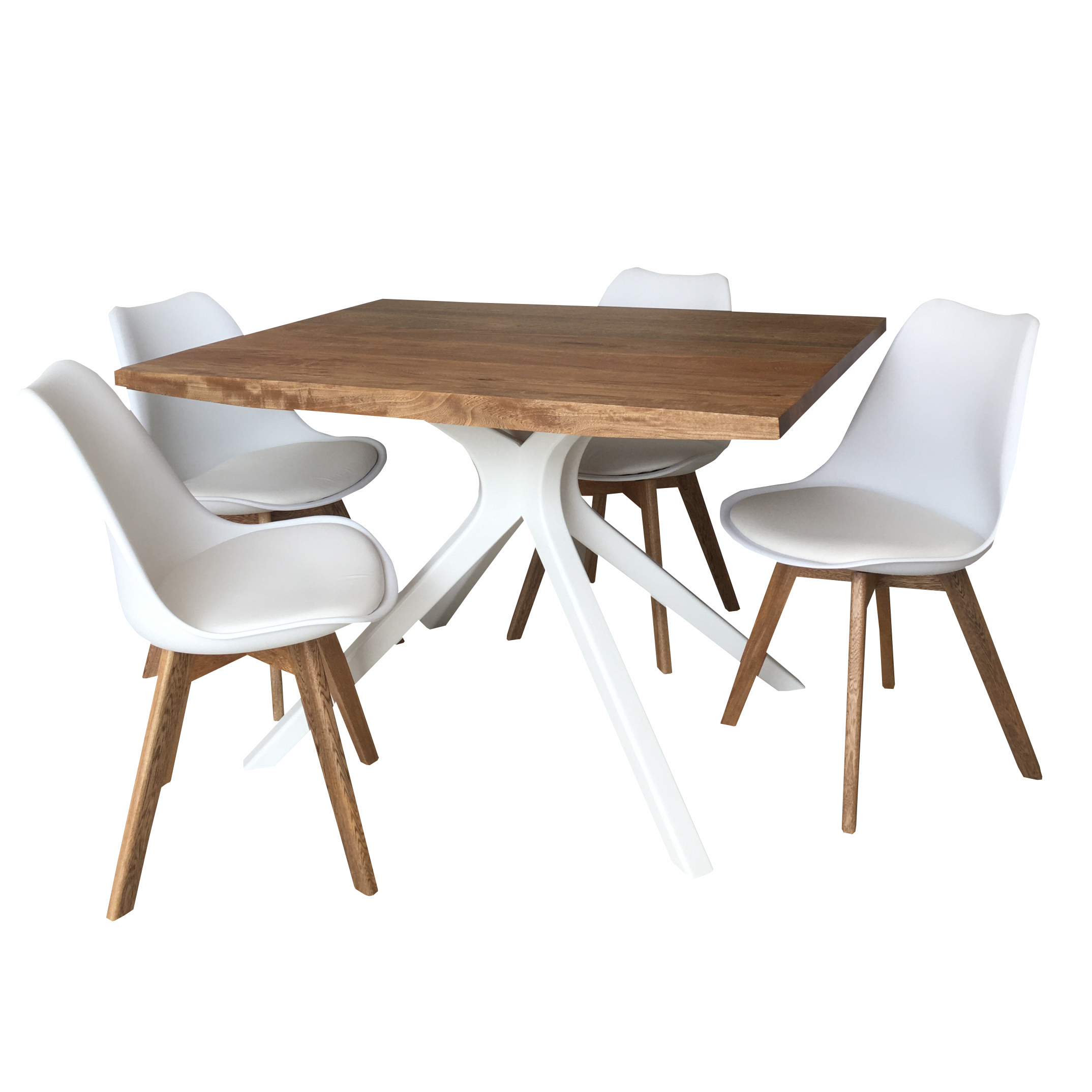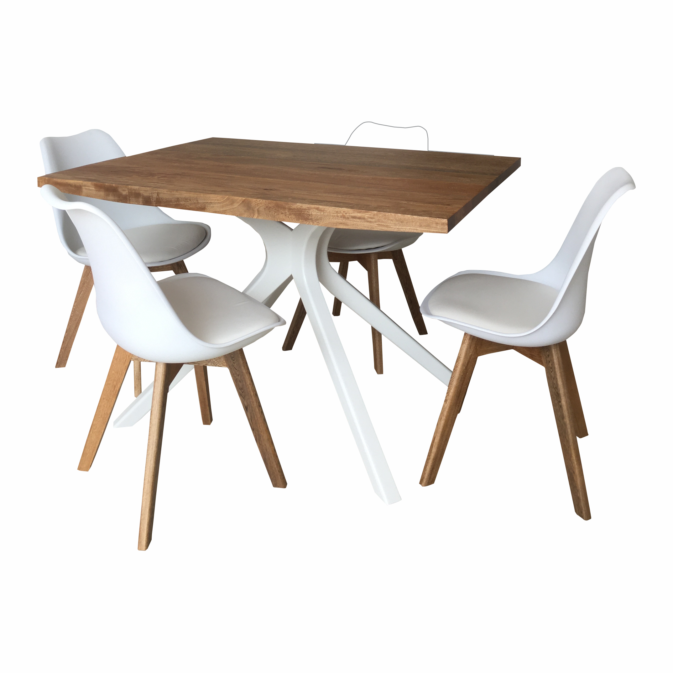 Juego de comedor diseño nordico, 4 sillas , mesa de comedor Vanny, fabricada en madera flormorado macizo.