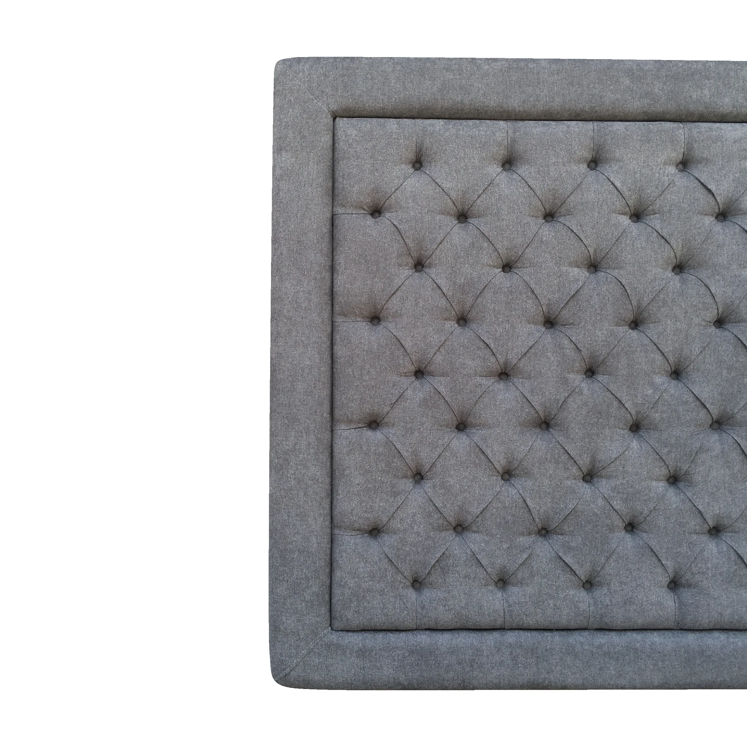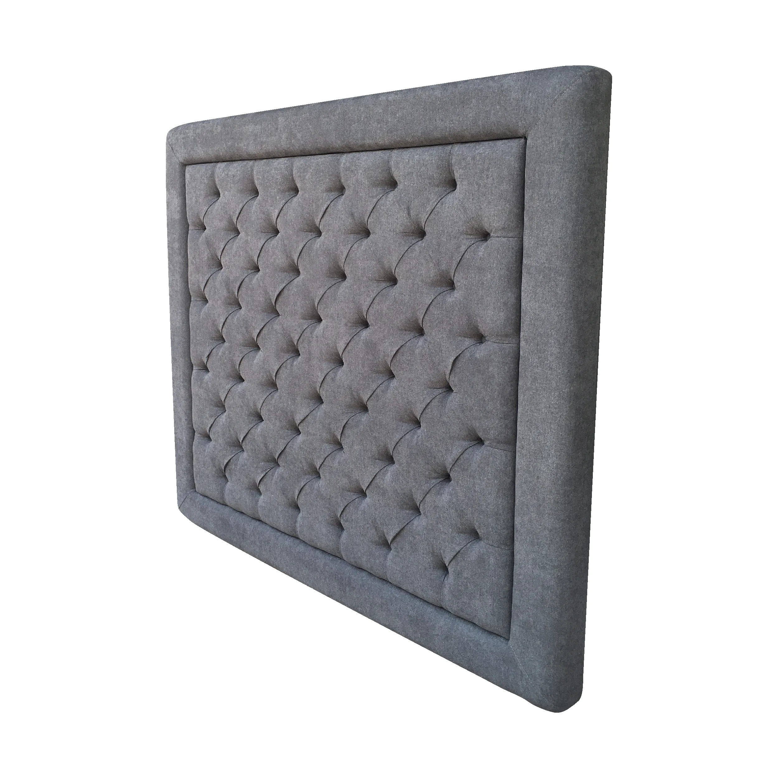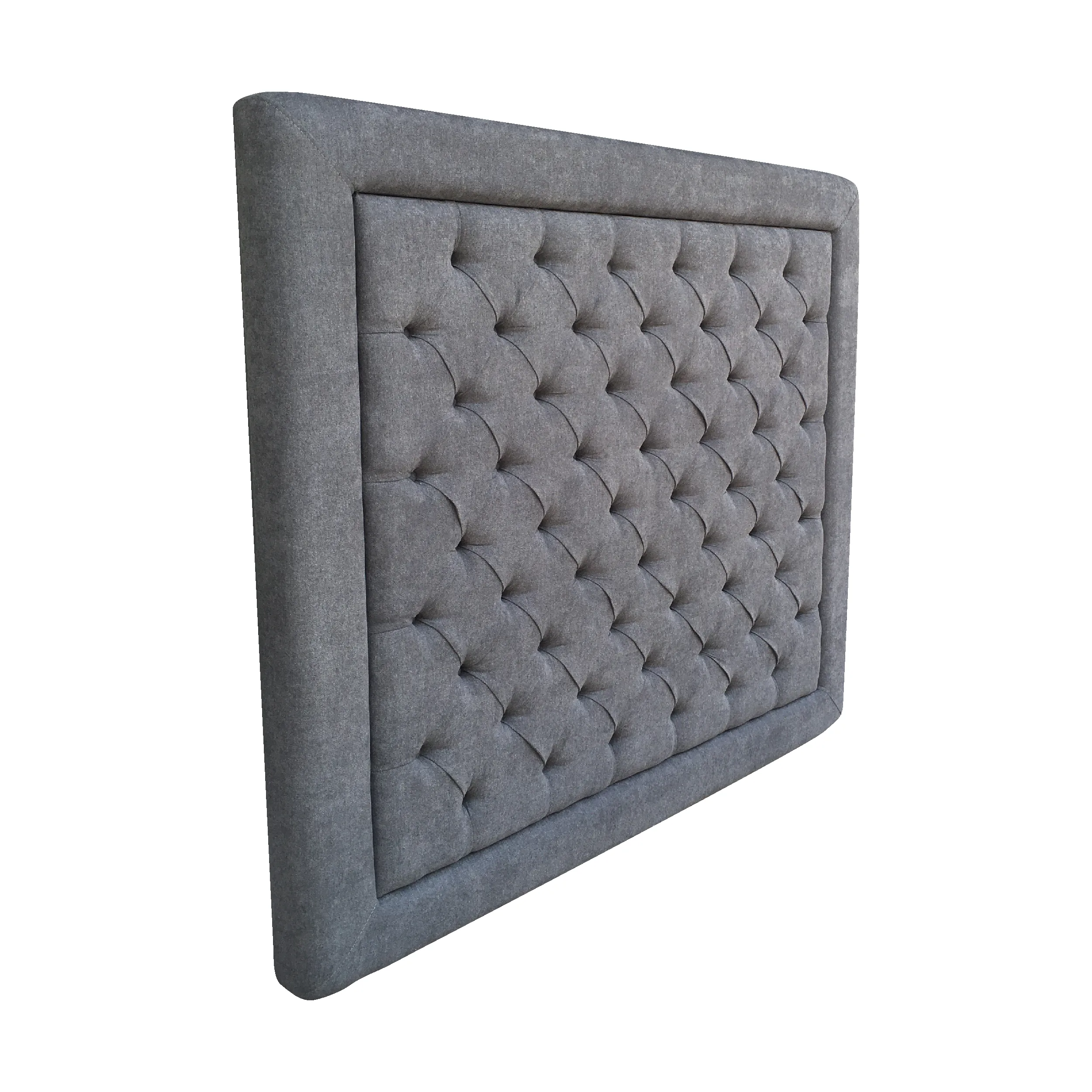 Cabecero para cama, acabado tapizado capitoneado con botón entrepliegues, marco tapizado, con instalación sobrepuesto en el espacio o para anclar a la pared.